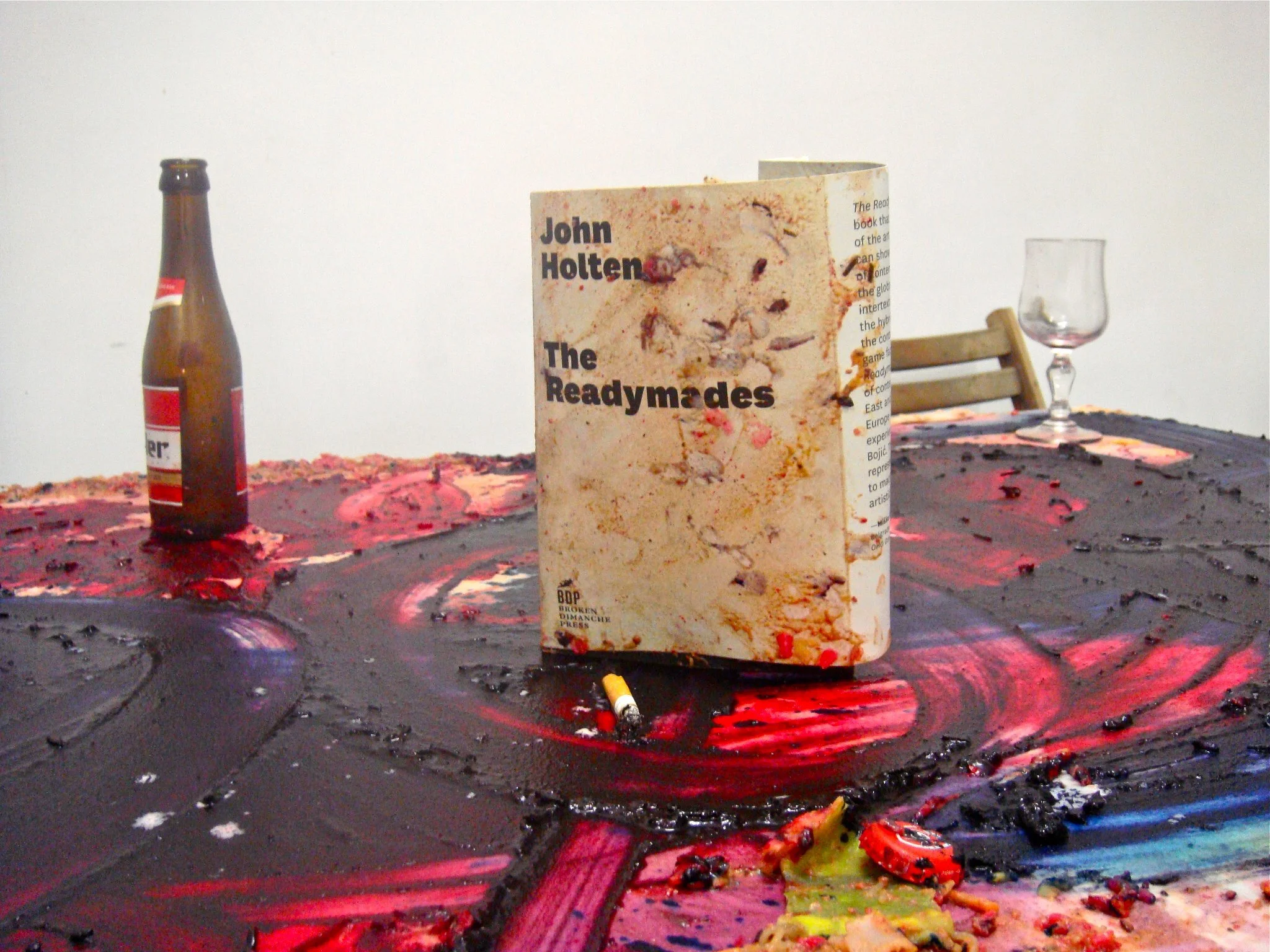When Darko read my manuscript of The Readymades I was nervous. Here was a Serbian artist who embodied the very fictional hero I put at the centre of my meta-fictional novel. Afterwards not only did he help me factcheck and finetune the novel’s details, when I approached him about my ideas for including visual art in the book to fill out the aprocaphyra, he purposed himself. What followed was an intense collaboration over years, from Berlin to Paris, Milan to New York (and beyond).
